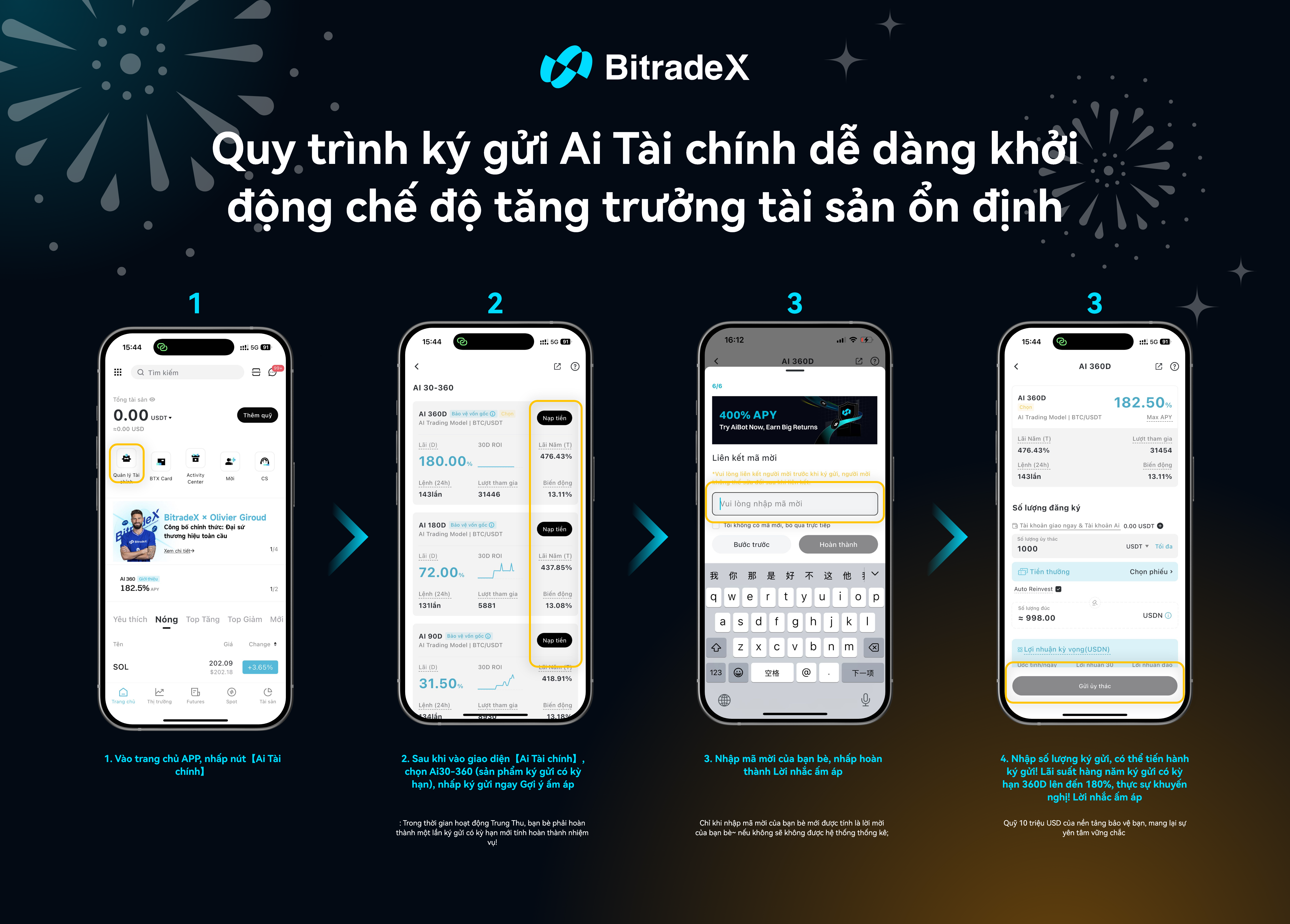 - Bất kỳ hành vi gian lận nào (khối lượng giả, lời mời giả, v.v.) sẽ dẫn đến mất tư cách. Quyền giải thích cuối cùng thuộc về nền tảng BitradeX.