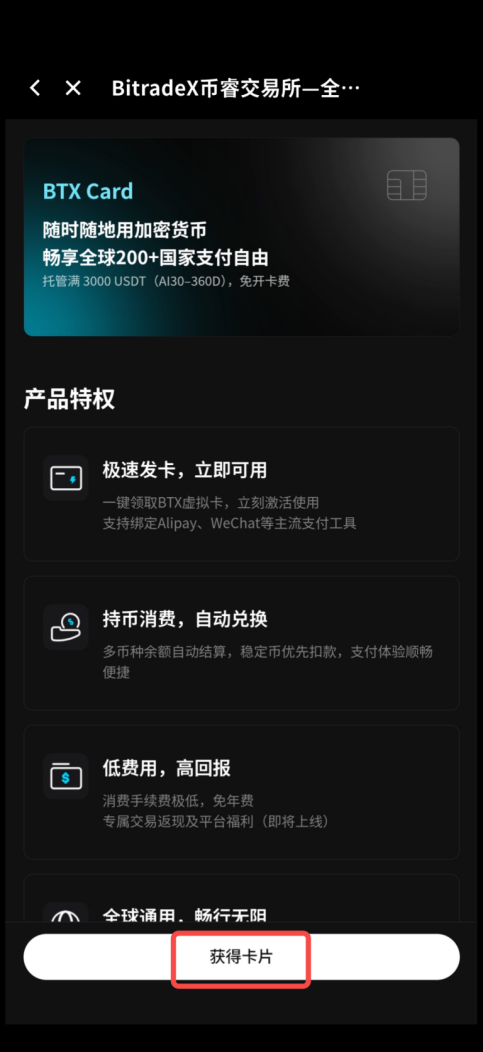 BTX Card 申请与激活指引
