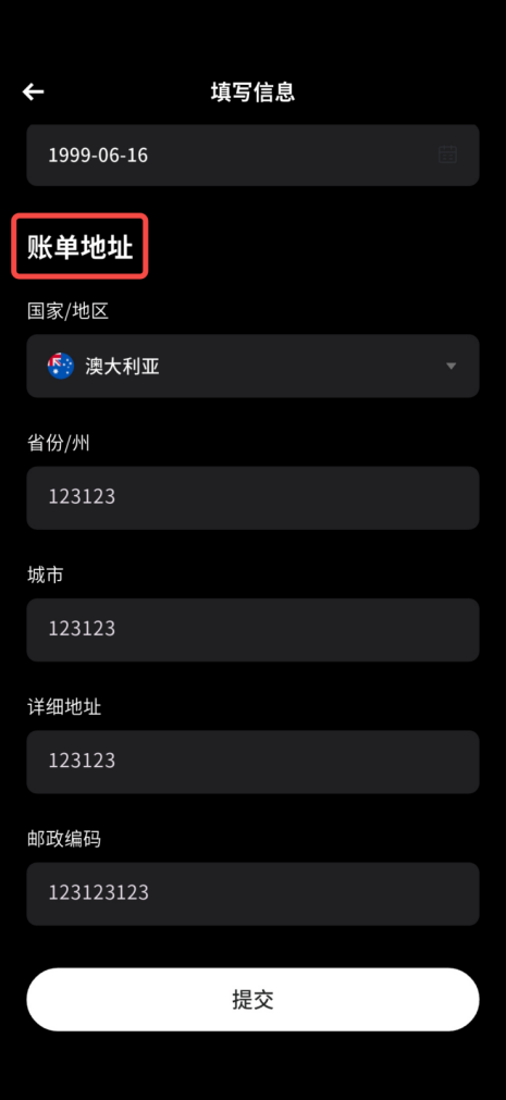 - 继续填写真实、有效的账单地址信息